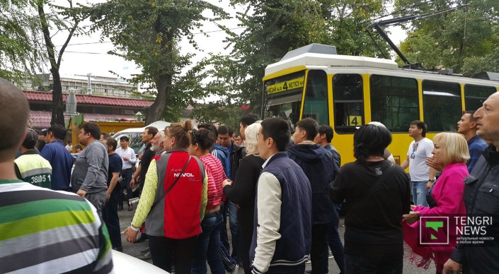 Корреспонденту Tengrinews.kz очевидцы рассказали, что тормоза у трамвая отказали еще на улице Шевченко. Стоит добавить, что на кабине трамвая есть знак "За рулем стажер".