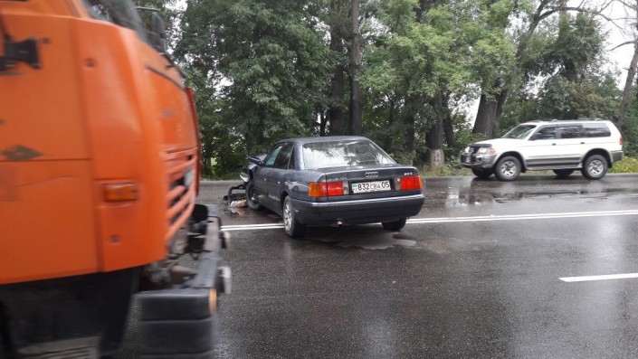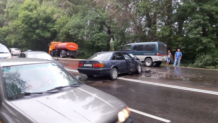 Дорожно-транспортное происшествие случилось недалеко от здания управления административной полиции Алматинской области по "Кульджинке". По словам очевидцев, якобы КамАЗ выезжал со стройки, и в этот момент по трассе в северном направлении двигалась автомашина Audi, которая врезалась на полном ходу в бензобак водовоза.