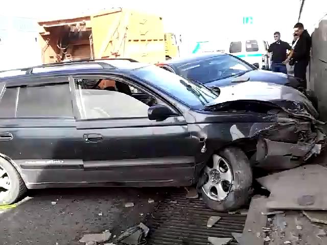 Авария произошла на пересечении улиц Саина и Шаляпина. По информации корреспондента, Toyota RAV4 и Toyota Caldina ехали по Саина в северном направлении, когда между ними попытался "проскочить" Lexus. Он задел RAV4, после его откинуло на Caldina. Последний автомобиль врезался в стену. У Lexus оторвалось колесо, его занесло и он повторно врезался в Toyota Caldina. Пострадал водитель Lexus, но по приезду "скорой" он от госпитализации отказался.