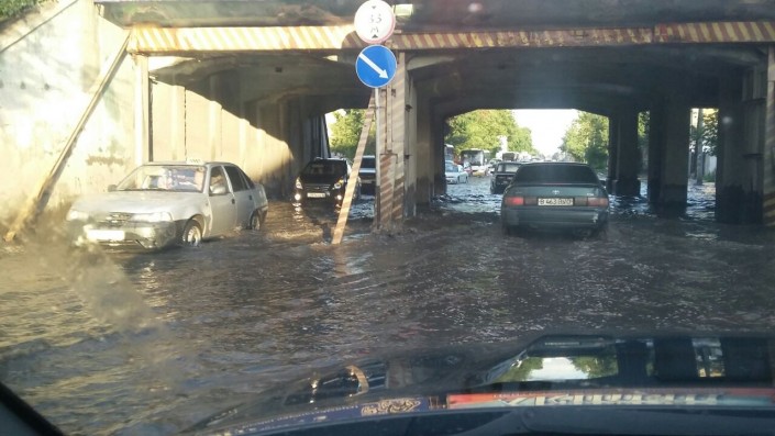Сильный ливень разыгрался и сегодня, 29 июля. Всего за несколько минут улицы города затопило. Из-за непогоды вышли из строя светофоры. Вдоль главных магистралей заметны незначительные повреждения билбордов и деревьев. О жертвах не сообщается. Отметим, что дождливую погоду с грозами и местами градом синоптики прогнозируют и в предстоящие сутки.