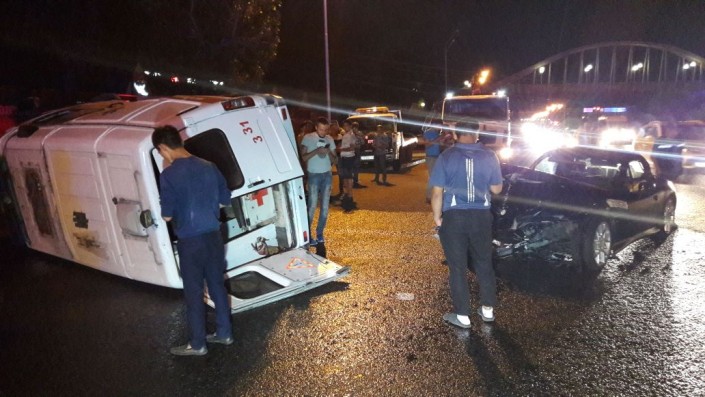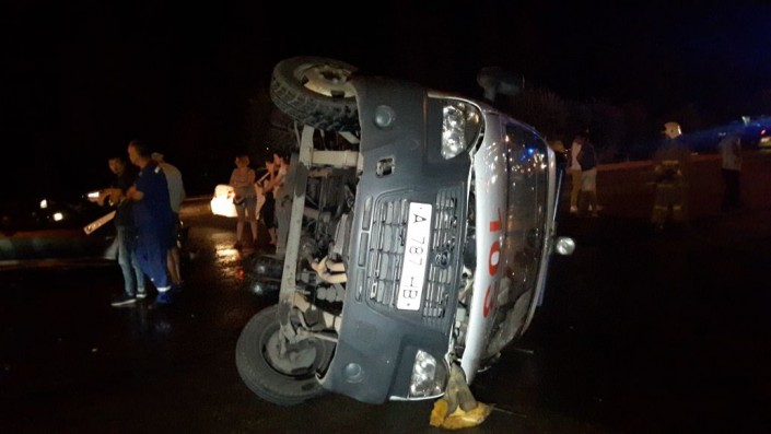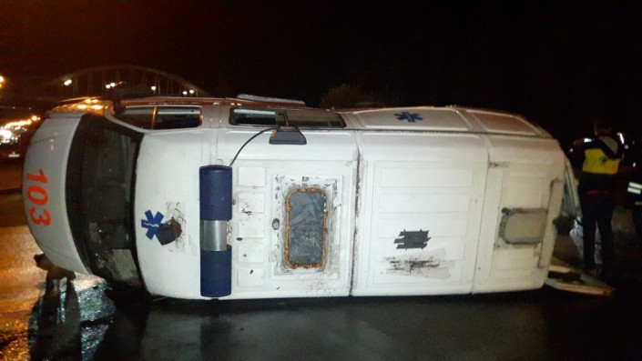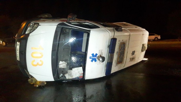 Машина скорой помощи перевернулась в результате ДТП в Алматы