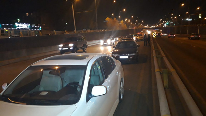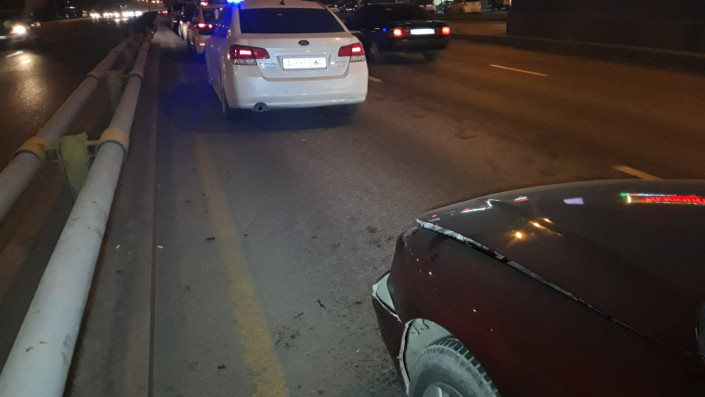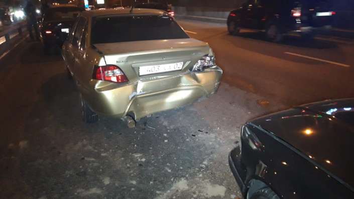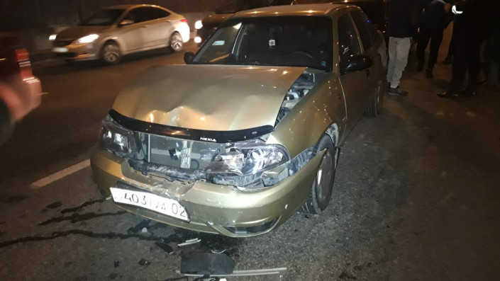 Авария произошла на развязке на пересечении улицы Саина и проспекта Абая. По словам очевидцев, Subaru двигался в северном направлении по Саина, водитель приостановился. За ним также остановились Mitsubishi и Daewoo. В это время тоже в северном направлении ехала автомашина BMW. Водитель не смог избежать столкновения, и автомобиль на полном ходу ударил Mitsubishi, который врезался в Daewoo, тот в свою очередь ударил Subaru.