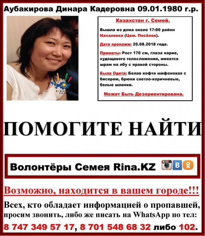 В Семее полицейские и волонтеры четвертые сутки разыскивают мать троих детей. Динара Аубакирова ушла из дома 20 августа и с тех пор так и не вернулась, сообщает Tengrinews.kz со ссылкой на Устинка LIVE.