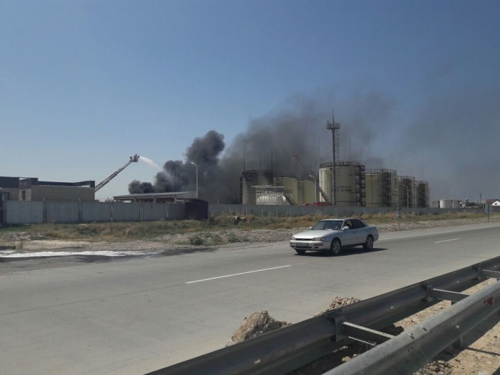 В момент столкновения с цистерн производили розлив. В результате загорелись 12 цистерн, три полувагона. Из-за распространения пожара была угроза возгорания 15 резервуаров. В тушении пожара были задействованы 22 единицы техники, 105 человек. Возгорание произошло примерно в 10.50 в районе поселка Карабулак Сайрамского района ЮКО.