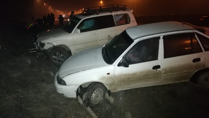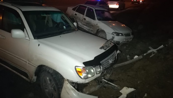 В южном направлении по улице Саина двигались Daewoo Nexia и Lexus LX 470. Водитель Nexia не справился c управлением, и машину стало заносить. Водитель Lexus хотел избежать столкновения. Он  стал жать педаль тормоза, но остановить автомобиль не смог. Ударившись, машины через тротуар улетели в арык.