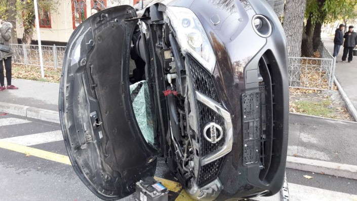 Как сообщает корреспондент, ДТП произошло на пересечении улиц Толе би и Абдуллиных. Nissan Qashqai следовал по Абдуллиных в северном направлении, а Volkswagen Golf по Толе би в западном направлении. Qashqai проигнорировал знак "Уступи дорогу", проехал перекресток, Golf ударил его в бок. От удара Qashqai перевернулся, его откинуло на тротуар.