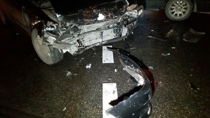 Первое ДТП произошло на пересечении улиц Толе би и Тургута Озала. По словам очевидцев, водитель Toyota Mark II проигнорировал красный сигнал светофора и столкнулся с двумя автомобилями марки BMW. В результате аварии пострадал водитель Toyota Mark II, его госпитализировали.