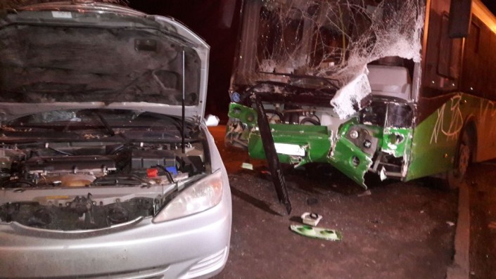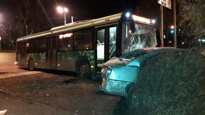 На пересечении улиц Жубанова и Алтынсарина столкнулись автобус 103-го маршрута и легковой автомобиль Toyota Camry. В результате аварии госпитализированы водитель автобуса и пассажир легковушки. Водитель японской иномарки скрылся с места происшествия.