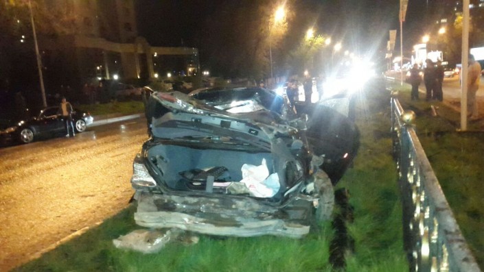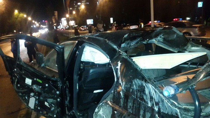 Авария произошла на Аль-Фараби за торговым центром Esentai Mall, перед улицей Шашкина (бывшая улица Университетская). Автомобиль марки BMW 745 двигался в восточном направлении. Водитель авто, не справившись с управлением, на большой скорости вылетел на газон и совершил наезд на препятствие.