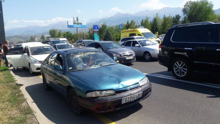 Автомашина Mazda двигается в западном направлении по Аль-Фараби. В этот момент женщина решила перейти дорогу в неположенном месте.  Автомобиль сбивает женщину, не успев затормозить. В результате чего женщина с различными травмами, в крайне тяжелом состоянии доставлена в ближайшую больницу.