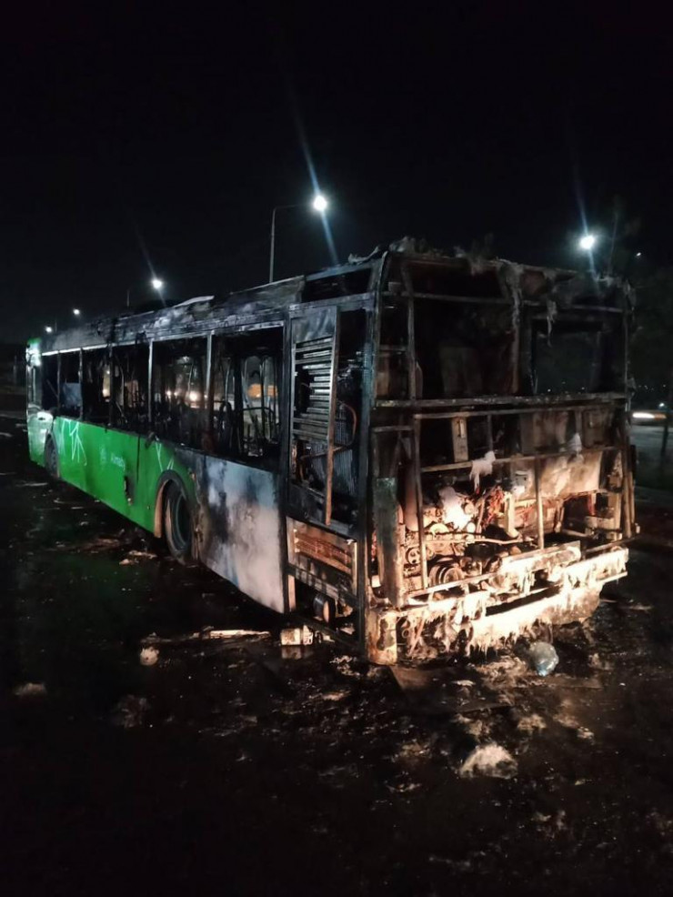 В ДЧС Алматы сообщили, что 3 апреля в 23:10 поступило сообщение о горении автобуса маршрута №125 марки "Лиаз-529265" 2017 года в микрорайоне "Кайрат".