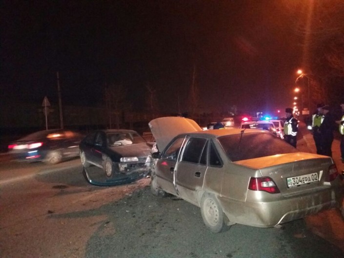 ДТП произошло по Илийскому тракту, около поворота на микрорайон "Жулдыз". Автомобиль марки Daewoo Nexia двигался в северном направлении по Илийскому тракту, Nissan - в южном направлении. Со слов очевидцев, Nissan выехал на полосу встречного движения и допустил лобовое столкновение с Nexia.