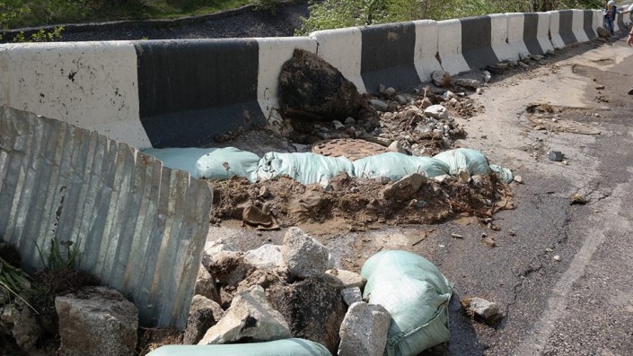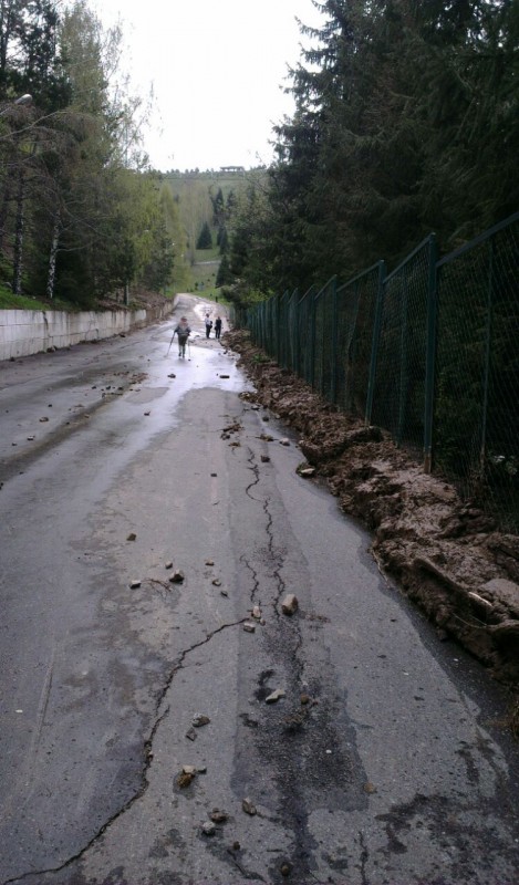 По дороге на высокогорный комплекс "Медеу" в Алматы произошел сход грязевой массы. Зафиксированы небольшие оползни на склонах. Фото с места происшествия публикуют пользователи Facebook и других социальных сетей.