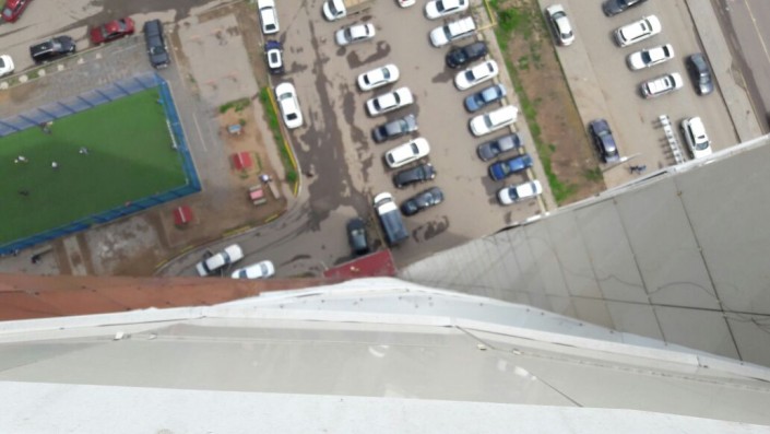 Он добавил, что примерно в 23.50 они услышали шум на улице. Именно тогда девушка и спрыгнула вниз. В результате падения погнулось металлическое ограждение около подъезда. По словам жильцов, девушка сама спрыгнула с перехода между лестничной площадкой и лифтовой.