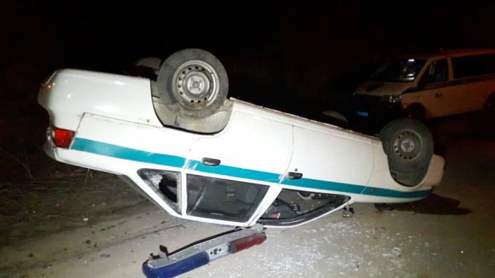Полицейский автомобиль перевернулся после ДТП в Алматы