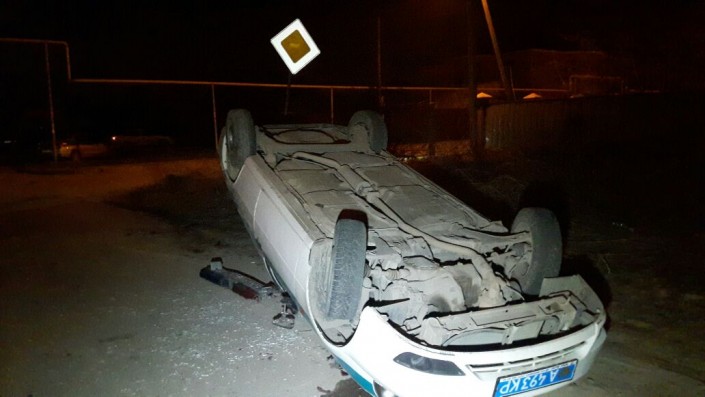 Авария произошла в микрорайоне "Дархан" на пересечении улиц Алтай и Майханова. По словам очевидцев, полицейский автомобиль Daewoo Nexia двигался в северном направлении по главной улице Алтай. В проезжающий по улице Майханова Daewoo Nexia на полном ходу врезался Mercedes. От удара полицейская машина перевернулась.
