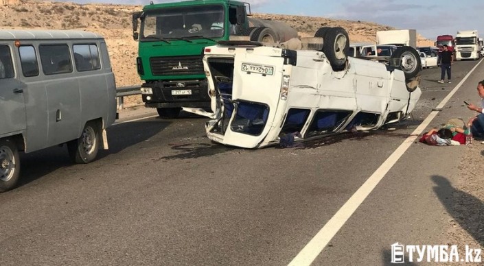Полная пассажиров "Газель" перевернулась на трассе Актау - Жанаозен
