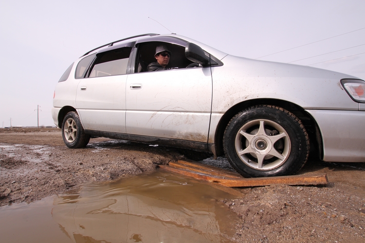 "Вчера в 10 вечера сухо было, но ближе к 12 ночи мы вернулись домой и проехать уже было невозможно", - рассказывает Бекнур Ильясов, который любезно вызвался нас прокатить на своем авто в самые непролазные места поселка.