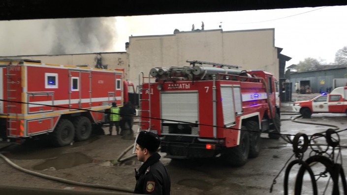 По данным ДЧС, пожар начался в 13.41. По данным ДЧС Алматы, первые пожарные расчеты прибыли к месту вызова уже в 13.46.