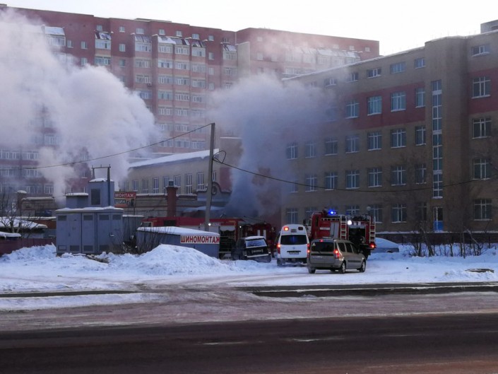 Пожар произошел на СТО в Астане, передает корреспондент Tengrinews.kz.