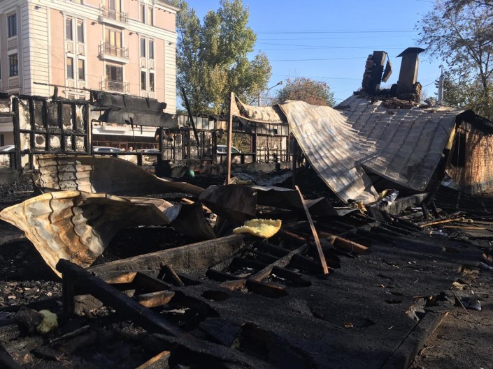Пожар в центре Алматы: что осталось от кафе "Динара"