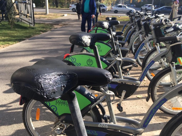 Также по улице Жамбыла находится велопарковка. От пламени пострадали сиденья и колеса припаркованных велосипедов.