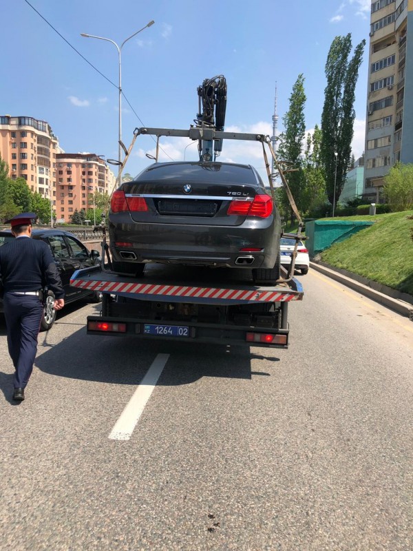 "Возможно, гражданин Ниязов Е. Б., 1987 года рождения, управляющий автомобилем, полагал, что серия по старому техпаспорту окажется незаметной, но такое недопустимо. Дело в том, что раньше у машины был номер с серией ВВВ, машина снята с учета. А на текущий момент водитель установил чужие номера с серией ЕЕЕ. За такие действия предусмотрено два административных штрафа, что и было сделано инспекторами, несшими службу на данном участке дороги", - рассказал командир специализированного батальона УАП ДП города Алматы Серикжан Абжанов.