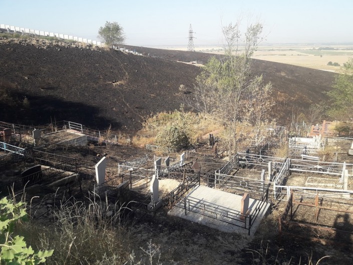 Также на странице Berik Baishev в Facebook появились фотографии с пожара на другом кладбище. По словам автора поста, пострадали в основном брошенные захоронения.