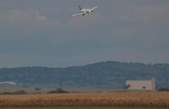 Пытающийся аварийно сесть борт Air Astana засняли на видео Embraer 190 в аэропорту города Бежа. © Jornal de Noticias