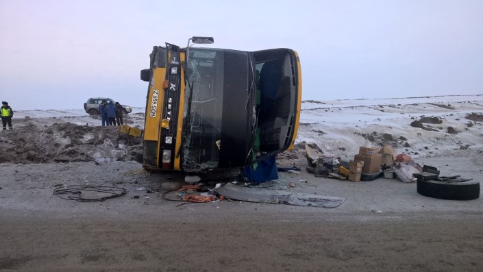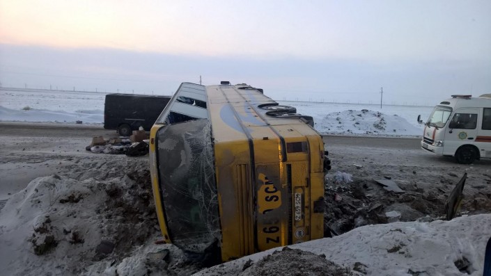 Авария произошла 3 февраля в 04.03 на территории Экибастузского района, на автодороге Кызылорда - Павлодар. Произошло опрокидывание на бок пассажирского автобуса "Сетра", следовавшего по маршруту Астана - Семей.