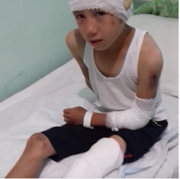 Сейчас ребенок находится в больнице, в тяжелом состоянии. У него ушибы на голове, ноге, разорваны уши.