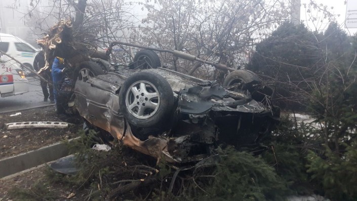 Со слов очевидцев, Toyota Camry, двигавшаяся в северном направлении по Саина, налетела на бордюр, после чего врезалась в металлический столб, сбила прохожего и снесла два дерева. Мужчина скончался от полученных травм.