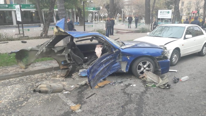 Машину занесло, она боком выскочила на полосу встречного движения и столкнулась с автомашиной Daewoo Nexia, которая в этот момент двигалась по Абылай хана в южном направлении. От удара Nissan разорвало на две части.
