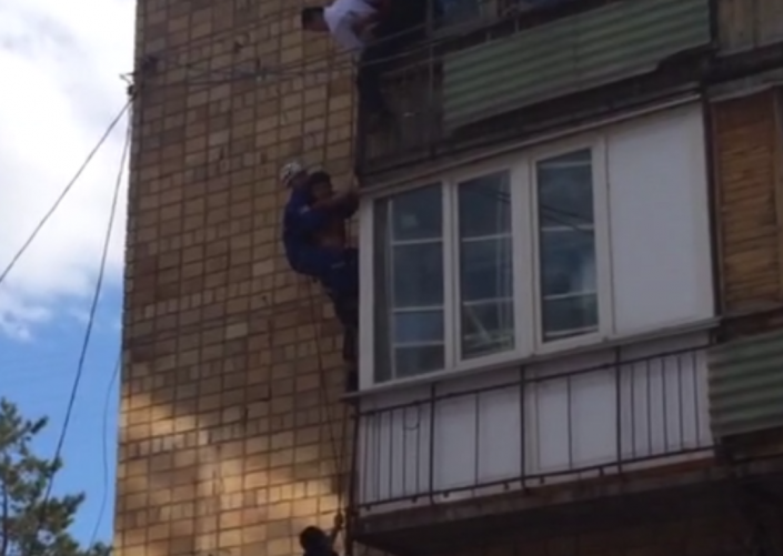 Мужчину, которого подозревают в ограблении квартиры, сняли с балкона четвертого этажа спасатели, передает корреспондент Tengrinews.kz. Они спустились к нему с крыши на тросе. Увидев спасателей, мужчина попытался спуститься сам, но его задержали.