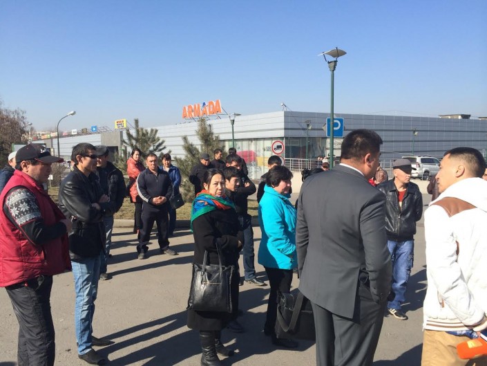 Строители ТЦ "Гранд парк" устроили в Алматы акцию протеста