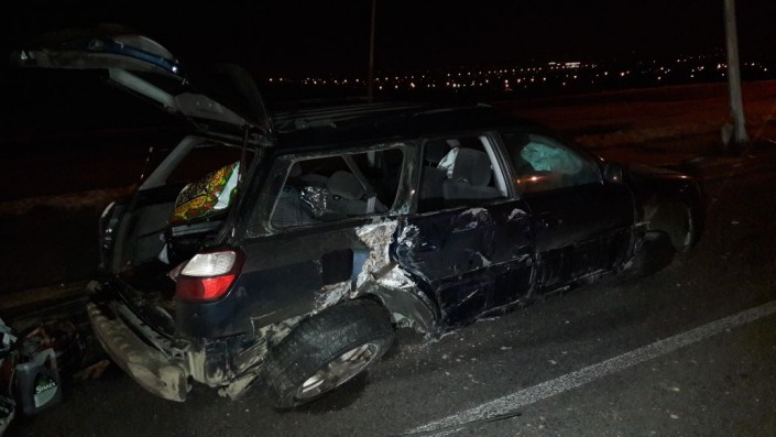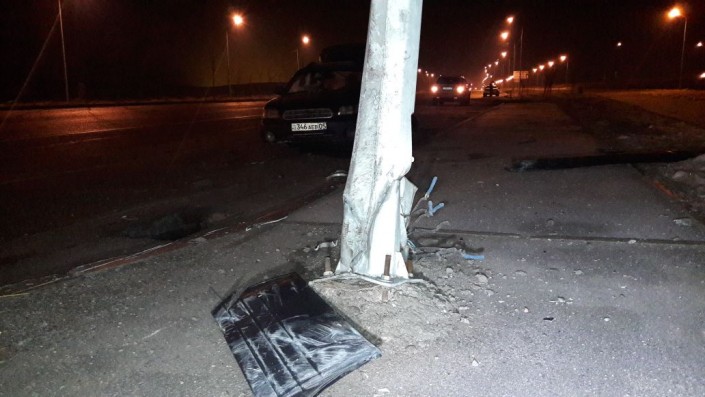 Водитель Subaru снес дорожный знак и врезался в столб в Алматы, передает корреспондент программы "Территория происшествий" на телеканале СТВ.