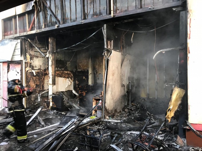 Как выяснилось, произошло горение двух бутиков с переходом огня на входную часть "Магнума" (кровля потолочного перекрытия). От теплового воздействия пострадала южная стена здания супермаркета. Принятыми мерами пожарных предотвращено распространение огня на близлежащие бутики.