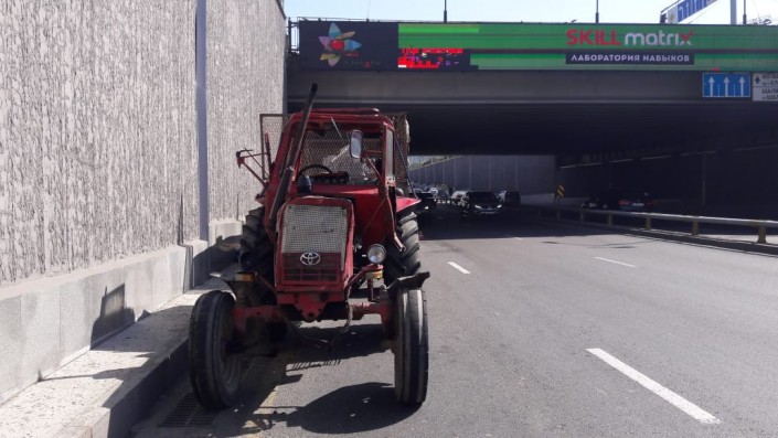 ДТП произошло в тоннеле на пересечении улиц Саина-Абая. Со слов очевидцев, трактор двигался в северном направлении и, не справившись с управлением, заехал на бордюр и опрокинулся.