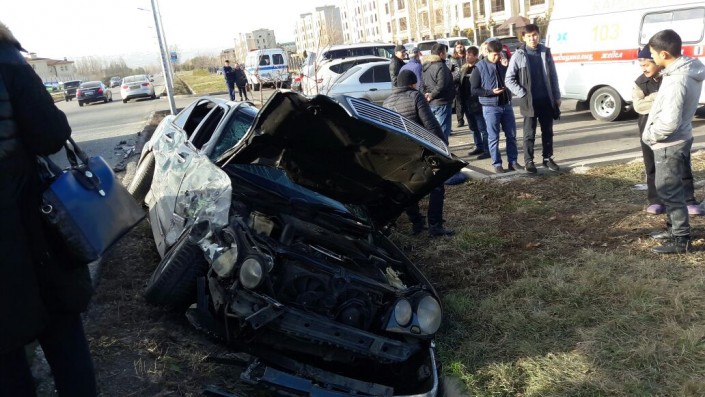 В результате столкновения Mercedes откинуло в арык, а Volkswagen перелетел арык и останавился на газоне. В результате ДТП пострадали три человека. Водитель и пассажир с Mercedes были осмотрены медиками на месте и от госпитализации отказались. Девушка с Volkswagen без сознания была госпитализирована в больницу. Выяснением обстоятельств аварии занимается полиция.