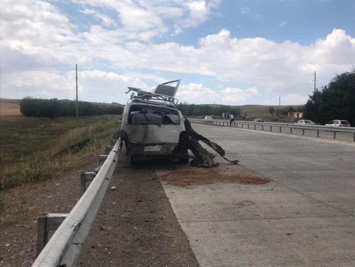 На трассе Сарыагаш - Шымкент в Туркестанской области возле аула Рабат столкнулись автомашина Mazda и микроавтобус SsangYong Istana, пишет Otyrar.kz.