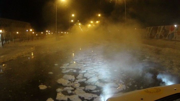 Трубу с горячей водой прорвало около детской больницы в Астане: затопило дорогу Фото Арсена Шакуова