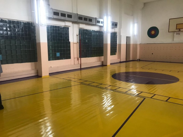 Школа расположена на пересечении улиц Джандосова и Яссауи. Сейчас здесь пусто, но все активно готовятся к встрече эвакуированных: освобождают помещения для ночлега, подвозят питьевую воду и продукты.