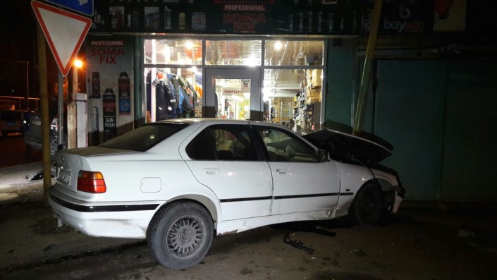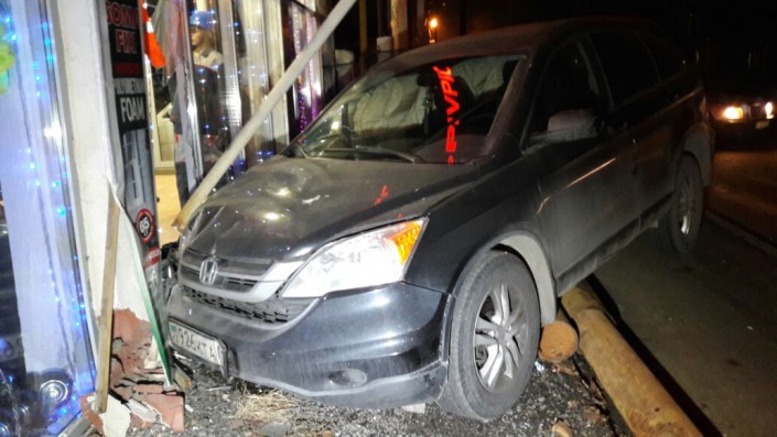 В результате столкновения обе машины откинуло к витрине строительно магазина. Honda разбила витрину, а BMW врезалась в столб. В ДТП пострадал водитель BMW, его госпитализировали в больницу.