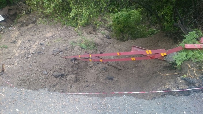 Как сообщает корреспондент программы "Территория происшествий" в настоящее время участок обрушенной автодороги оцеплен полицейскими, движение закрыто в обоих направлениях. Сообщается, что никаких восстановительных работ на месте происшествия не проводится.