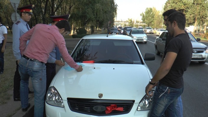 Ранее в Таразе на 115 тысяч тенге были оштрафованы участники свадебного кортежа. Одна из машин колонны - Toyota Camry - тогда двигалась задом наперед, а два других авто марки Lada следом за ней ехали "змейкой". На нарушителей было составлено девять административных протоколов. В частности, за нарушение правил пользования ремнями безопасности, правил перевозки пассажиров, движение задним ходом в местах, где такие маневры запрещены, невыполнение требований подать сигнал перед началом перестроения и за создание аварийной обстановки.