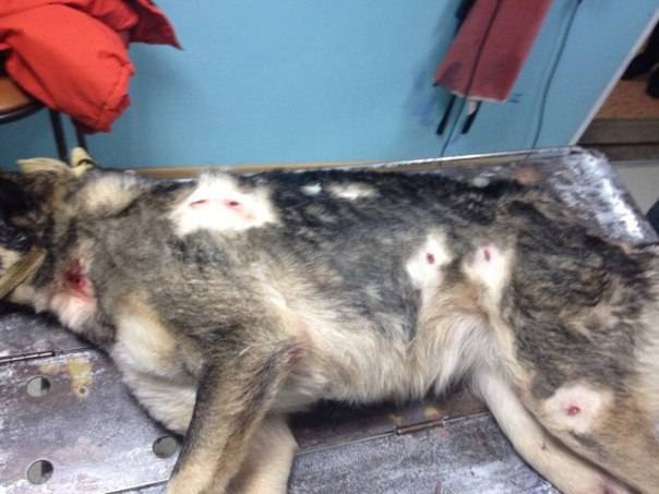 С заявлением в полицию обратились участники общественного фонда "Сердца Павлодара", которые сообщили о раненой собаке, найденной в одном из дворов многоэтажек Павлодара. Как рассказали общественники, животное истекало кровью от огнестрельных ран.