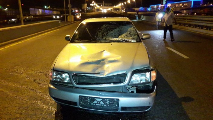 Audi двигалась по Северному кольцу в северном направлении. По словам очевидцев, напротив рынка "Салем" водитель сбил пешехода, который перебегал дорогу в неположенном месте.