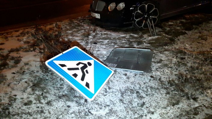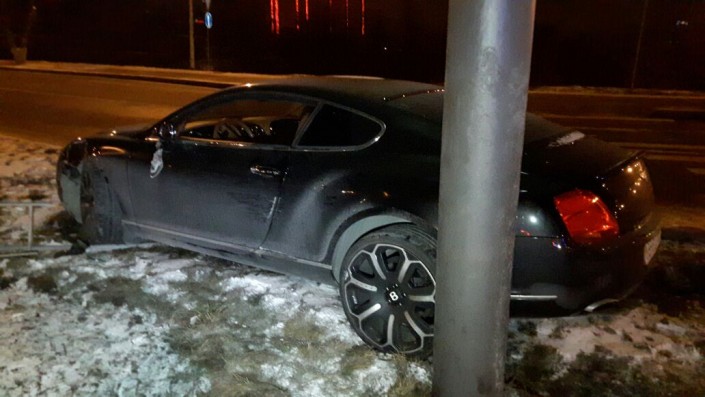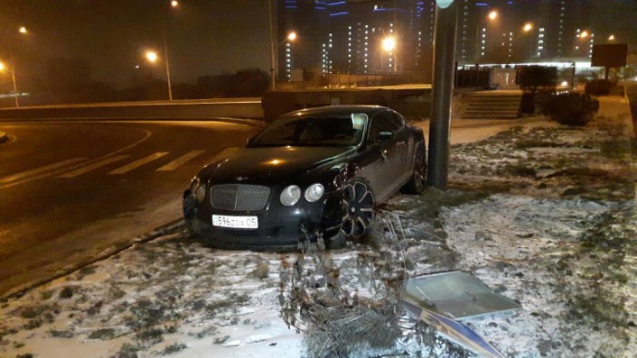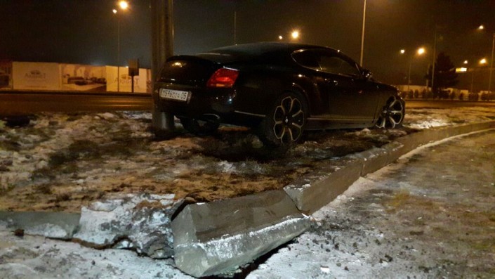 Водитель Bentley двигался по проспекту Сейфуллина в южном направлении. На выезде на проспект Аль-Фараби он не справился с управлением и врезался в столб билборда. В результате аварии никто не пострадал.