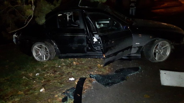 Авария произошла на проспекте Суюнбая. Как рассказал водитель BMW, на затяжном повороте он не справился с управлением, и автомобиль занесло на мокрой дороге. В результате машина врезалась в фонарный столб.