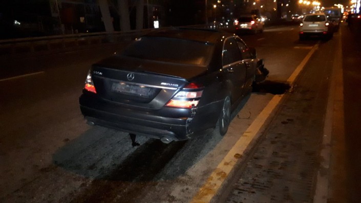 Как утверждают свидетели, в этот момент якобы водитель Mercedes на большой скорости пытался проехать между двумя автомобилями. Однако ему не удалось удачно совершить маневр. "Mercedes задней частью ударятся об Audi, после чего его по инерции откидывает вправо в Toyota. Затем его откидывает в крайний левый ряд, где в это время также в восточном направлении двигалась Toyota Camry. В результате этого и Mercedes, и Camry влетают в отбойник, после чего у них отрывается переднее колесо", - сообщили очевидцы.